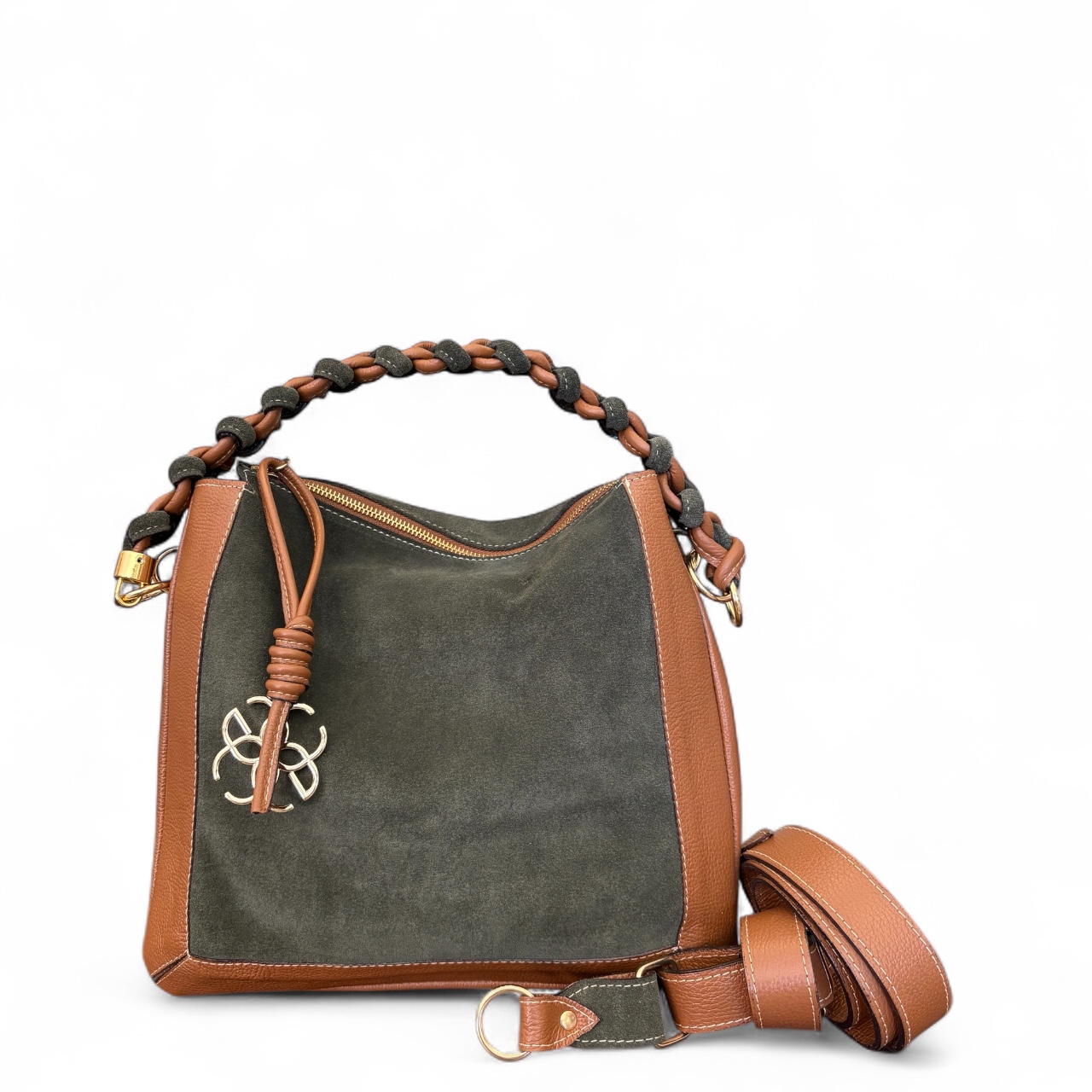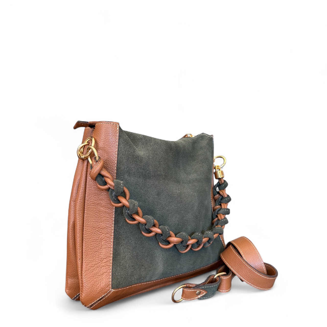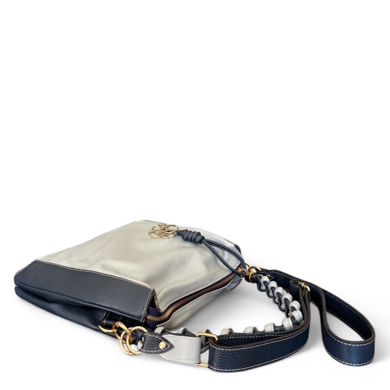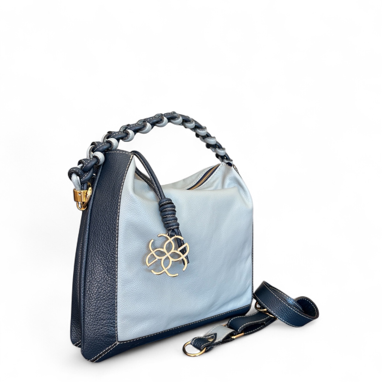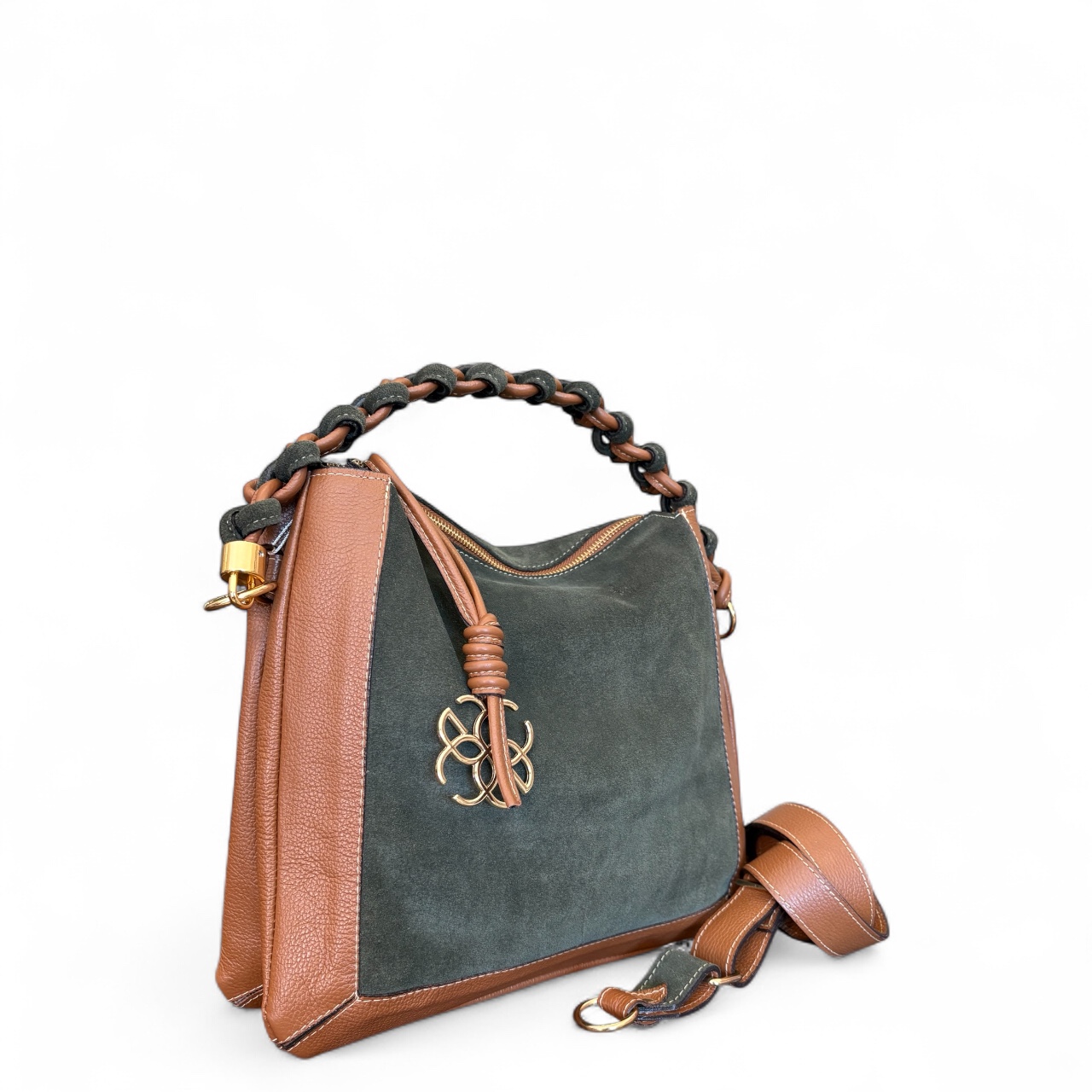 Internamente possui duas divisões com opções de bolsos internos. Alça de ombro transada manualmente e opção também da alça transversal.